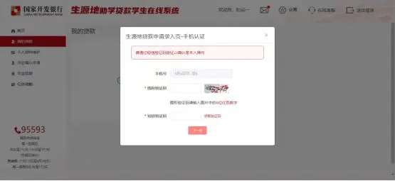 06手机短信认证成功,弹框贷款申请提交成功页,贷款申请提交成功,导出申请表,前往县级学生资助管理部门现场签订合同。
