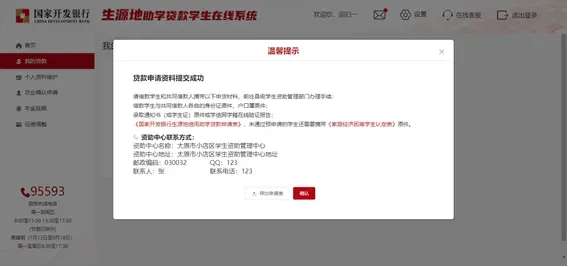06手机短信认证成功,弹框贷款申请提交成功页,贷款申请提交成功,导出申请表,前往县级学生资助管理部门现场签订合同。