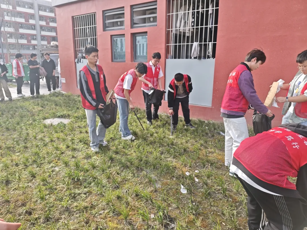 另一组校园清瓶志愿者队伍穿梭于教学楼、操场、学生公寓和校园其他公区,手持环保夹与分类袋,捡拾散落垃圾并分类投放。弯腰捡起的是垃圾,挺直腰杆传递的是文明,信息工程学院学子们躬身实践,传递爱护学习环境,建设美丽校园的文明理念,以本次活动为契机呼吁全校学子爱护环境,共建美丽校园。