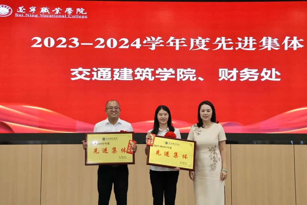 (理事长余泳为交通建筑学院、财务处等2个先进集体颁发荣誉证书)