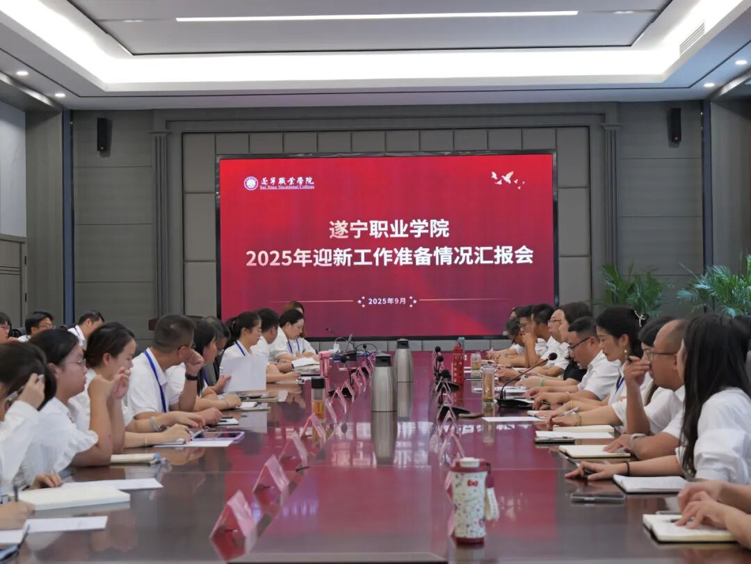 9月2日下午,遂宁职业学院在明德楼5108会议室召开2025年迎新工作准备情况汇报会,全面检验迎新工作筹备成果。会议由校长刘志东主持,理事长余泳及全体干部参加会议。