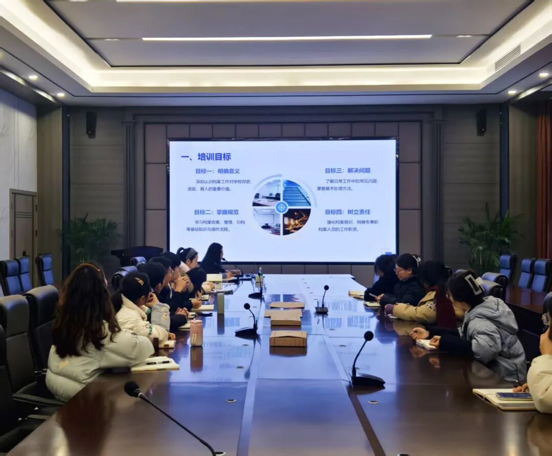 本次培训由党政办公室张奥老师主讲,围绕档案管理基本规范、日常工作中常见问题及处理方法等内容展开,重点讲解了党群档案和行政档案的收集、整理与管理实务。培训内容系统全面、贴近实际,既有理论指导,又有操作示范,为参训人员提供了一次宝贵的学习机会。