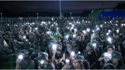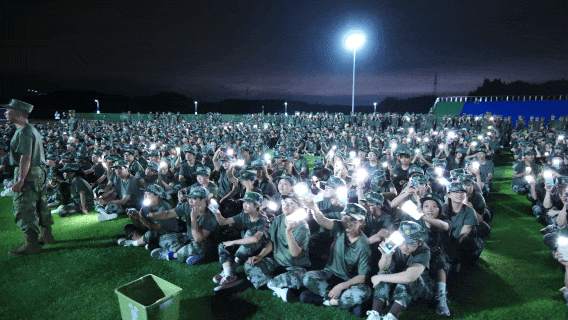 🌞 白天:训练场上的钢铁战士 白天的训练场上 "一二一"的口号声响彻云霄 01 阳光下汗水闪烁的光芒 🌙 夜晚:才艺绽放的璀璨星空 当夜幕降临,训练场秒变狂欢舞台! 🎤 千人大合唱 《后来》的前奏响起 "后来,我总算学会了如何去爱~" 有人眼含泪光,有人微笑跟唱 🔥 喷火才艺,惊艳四座 最让人瞠目结舌的环节来了! 火焰划破夜空 🌌 白天的汗水,夜晚的欢笑 青春正当时,奋斗最美丽