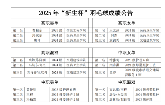 比赛根据学生特点,设置了高职男子组、高职女子组、中职组及混合组等多个组别,各项目及组别均取前三名。在18天的赛程中,共进行了236场精彩对决,从力量与策略并存的篮足球赛场,到技巧与协作兼具的乒羽球台,充分展现了学子们的运动热情与青春活力。